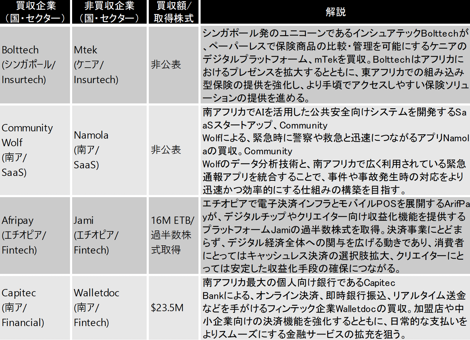 3. アフリカ・スタートアップM&A(公開情報に基づく速報ベース)